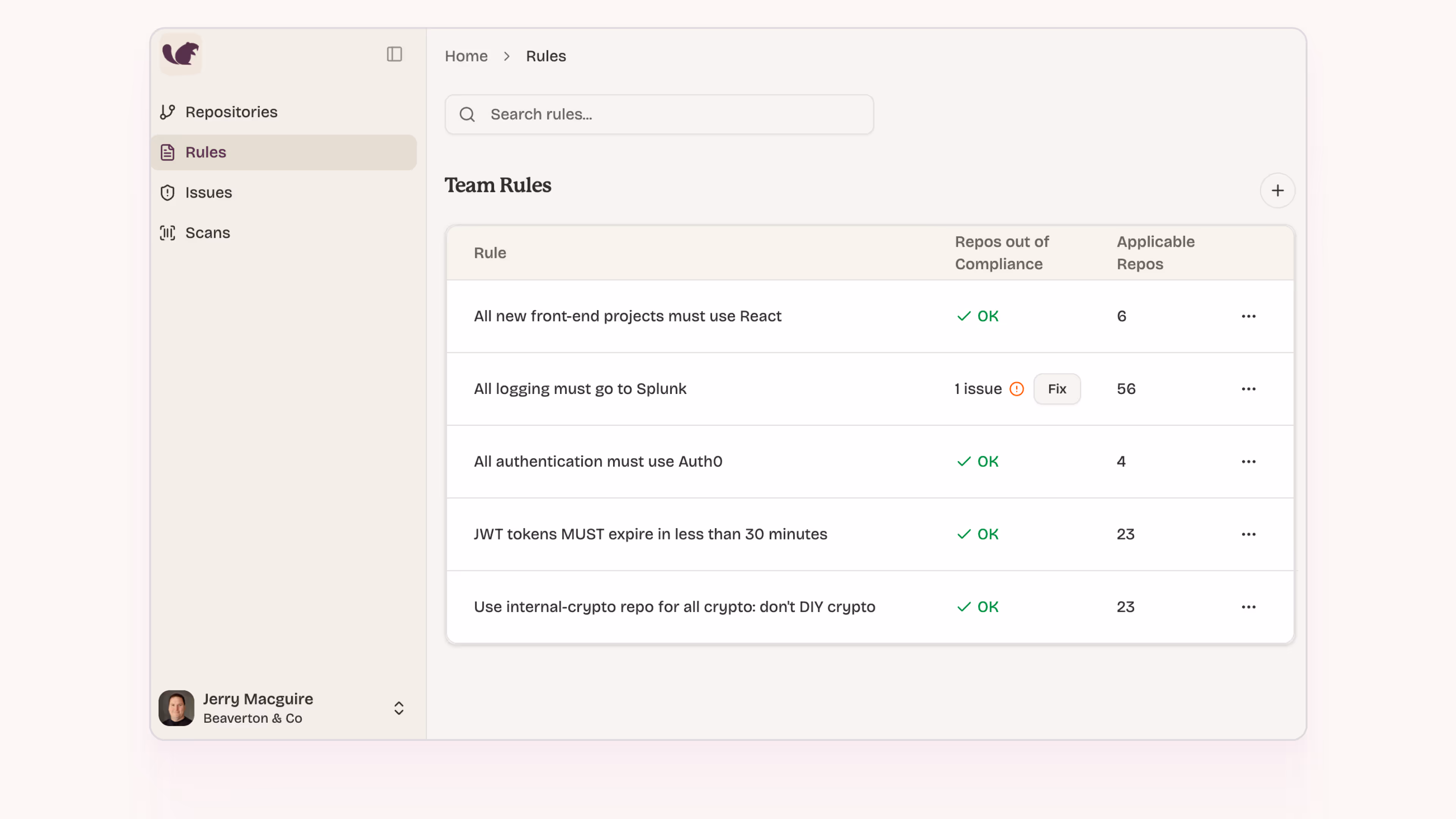 Define your Teams’ Security Requirements in plain English, and catch security issues instantly.